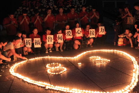 晚上6点钟还不到,德信地产的工作人员就早早的来到千秋广场准备着今晚举行的烛光祈福活动,在准备的同时,在场的群众也陆续聚集,不少一旁经过的的老百姓也依依赶来加入到了本次活动当中。晚上7点钟,祈福活动正式开始。此次活动共分为三部分,第一部分是填写祈福卡和点燃烛火。诺大的广场中央有序地摆满了600颗蜡烛,随着群众的依次点燃,摇曳的烛光逐渐汇聚成了心的形状,而心的中间写着“鲁甸”与“8.3”。接着是活动的第二部分,为地震中逝去的人们默哀。两分钟的现场突然间变的很静,大家收敛了以往的笑容,面对着心形的烛光慢慢低头,默默为在鲁甸地震中逝去的人们哀悼祈福。
