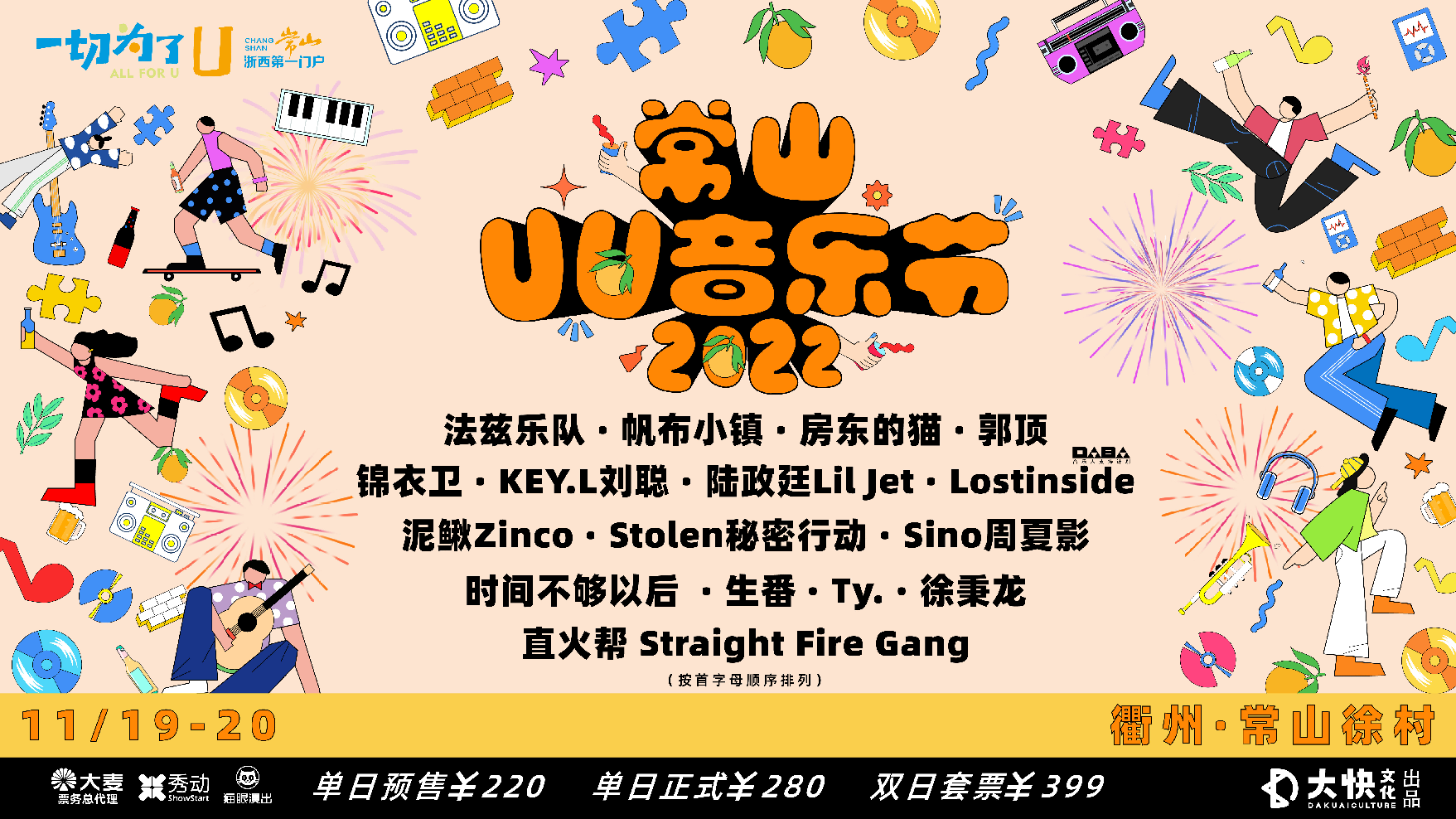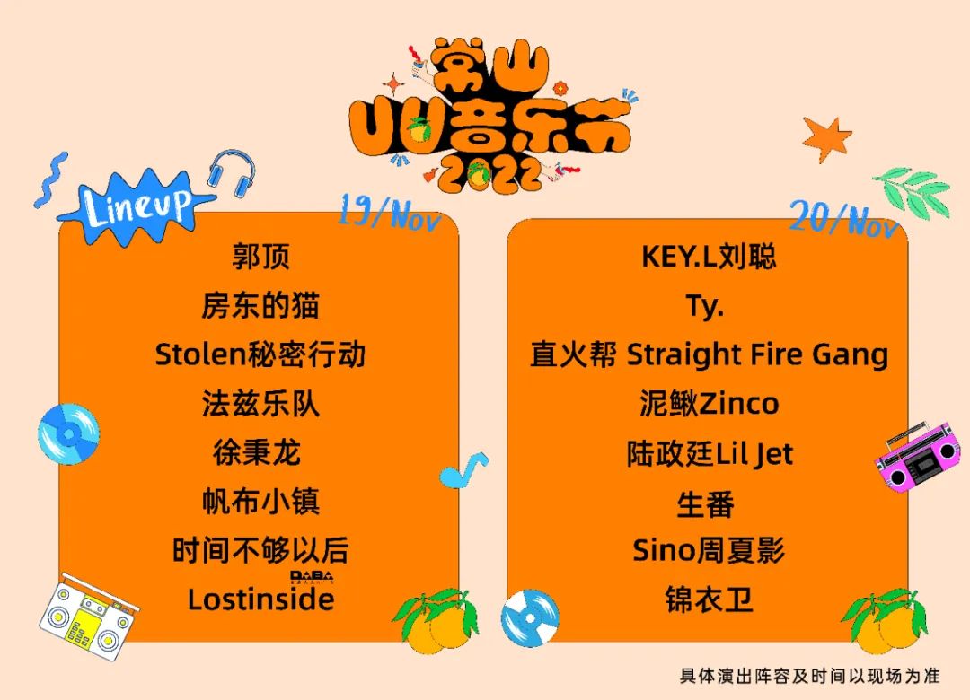 2022常山UU音乐节,9月22日14点起,于大麦、秀动、猫眼APP全网开放购票,演出时间表、现场玩法、交通出行等更多信息将持续推出,请保持关注!